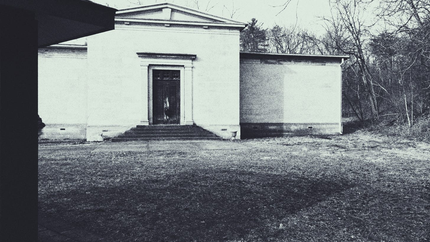 The ice machine down the hall was broken. He drank his whiskey at room temperature, and went to sleep early in an uncomfortable chair with upholstery that matched the wallpaper.